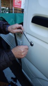 運転席ドアかぎ穴右回しにてピッキング開錠