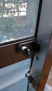 その後 戸坂数甲にてクレセント錠がこわれたから鍵付きの錠をと言う事で 鍵付きファスナーロックを取り付けました。