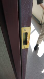ドアーとストライク受けを修理調整して完了です。