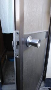 勝手口は YKK AP錠を取り付けて完了です。