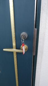 木造アパートで内側ぽっちボタンを押して閉めた カギは中にあるとの事です!