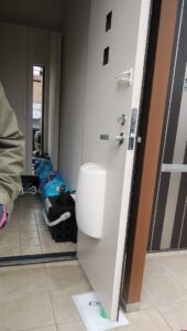 5分で開錠です。 後 U9シリンダーを取付けて終了です。室内には誰もいなかったようです。一安心 あと管理会社と警察にお任せして引上げです。 ご依頼ありがとうございました!
