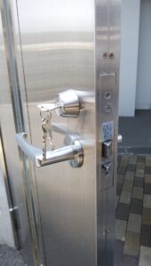 こちらはとあるマンションの共用部のドアです 逆マスターシリンダーが入荷したので交換に行ってきました