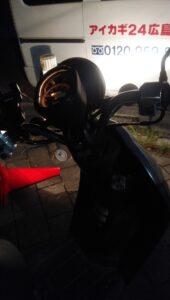 昨夜 遅い時間からの依頼です。 原付バイクシートの中に鍵を閉じ込めたと言って連絡頂きました。