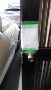 現地に着くと張り紙がしてありました。(管理会社からの依頼)