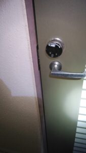 とある方法で開錠です。 あと管理会社さんが既存のシリンダーに交換して終了です。