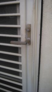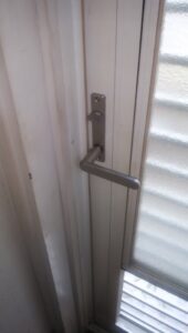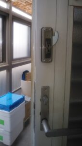 勝手口のカギが開かない? 鍵はカチカチと回ってるがレバーハンドルを下げてもドアーが開かないと言って電話を頂きました。