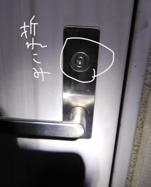 遅い時間からの依頼です 鍵がねじ切れた 開かない? 入れない?と言って電話を頂きました。 色々トライするも抜き取れません・ 破錠開錠 交換します。