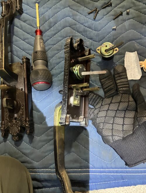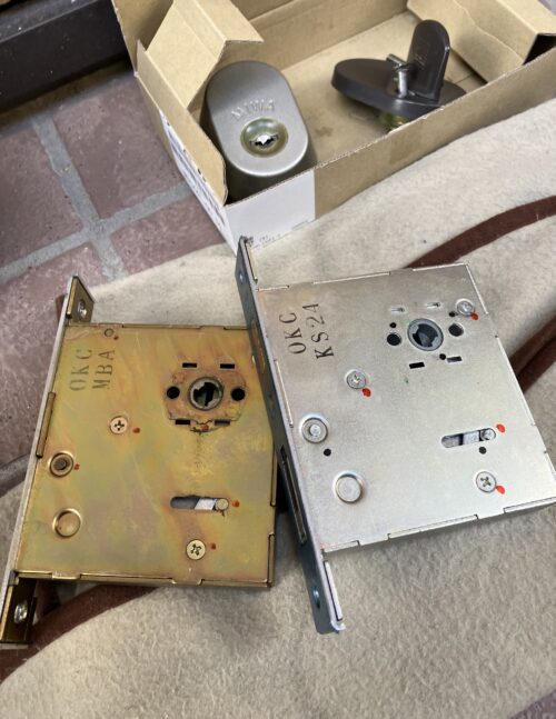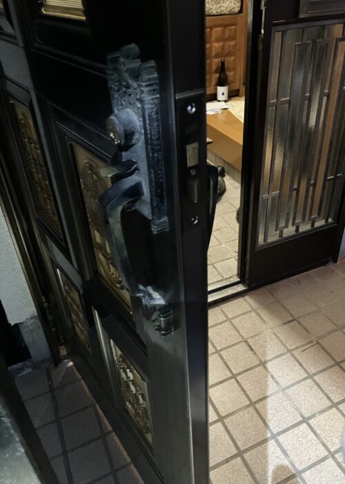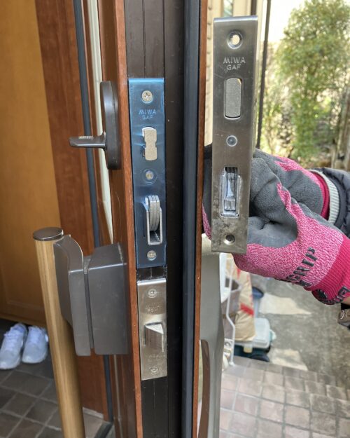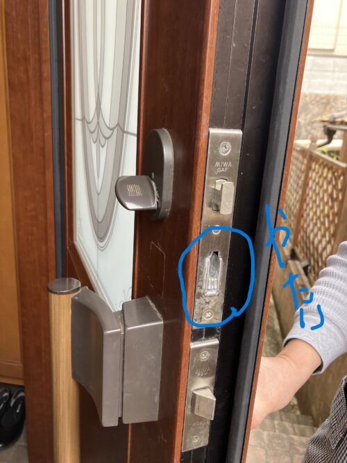 下側のみ施錠している 鍵を無くしたので開けて交換してくださいと言って電話を頂きました。 WESTのサムラッチ錠(主錠)です。