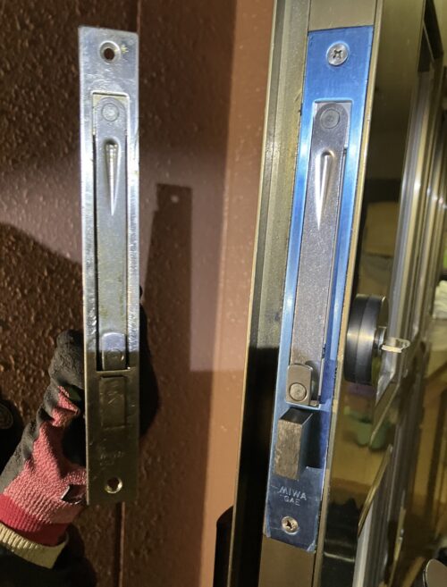 昨夜遅い時間からの依頼 ドアーを閉めてもサムターンがかけれない?と言って電話を頂きました。 築35年くらいだそうです。 GAEケースが悪いです 交換を提案