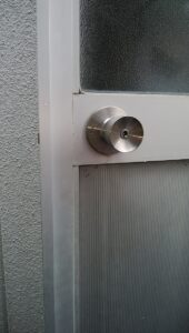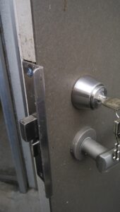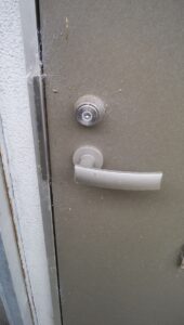 店舗裏口のドアーです。 作製も交換も余り料金が違わない事を説明して 交換する事になりました。