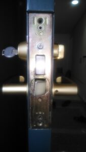 何とか取り外してPRのシリンダーを取り付けて完了です。 鍵は3本付いて一年間保証付きです。